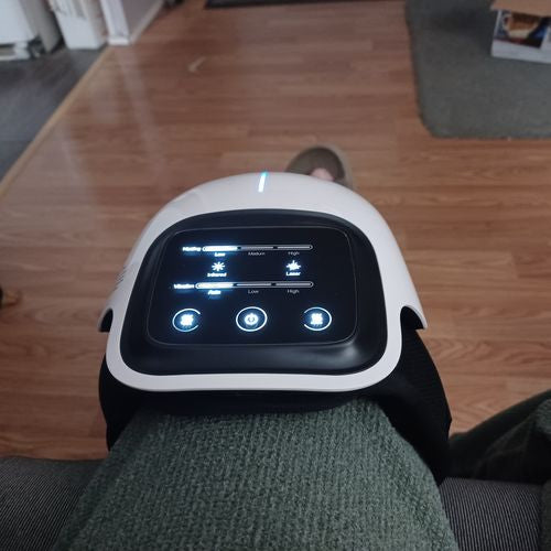 Der Knemassager wurde mit der innovativen Triple-Therapy-Technologie entwickelt, die Rotlichttherapie, Wärmetherapie und Massagetherapie kombiniert, um Ihre Kniegelenke effektiv zu unterstützen.